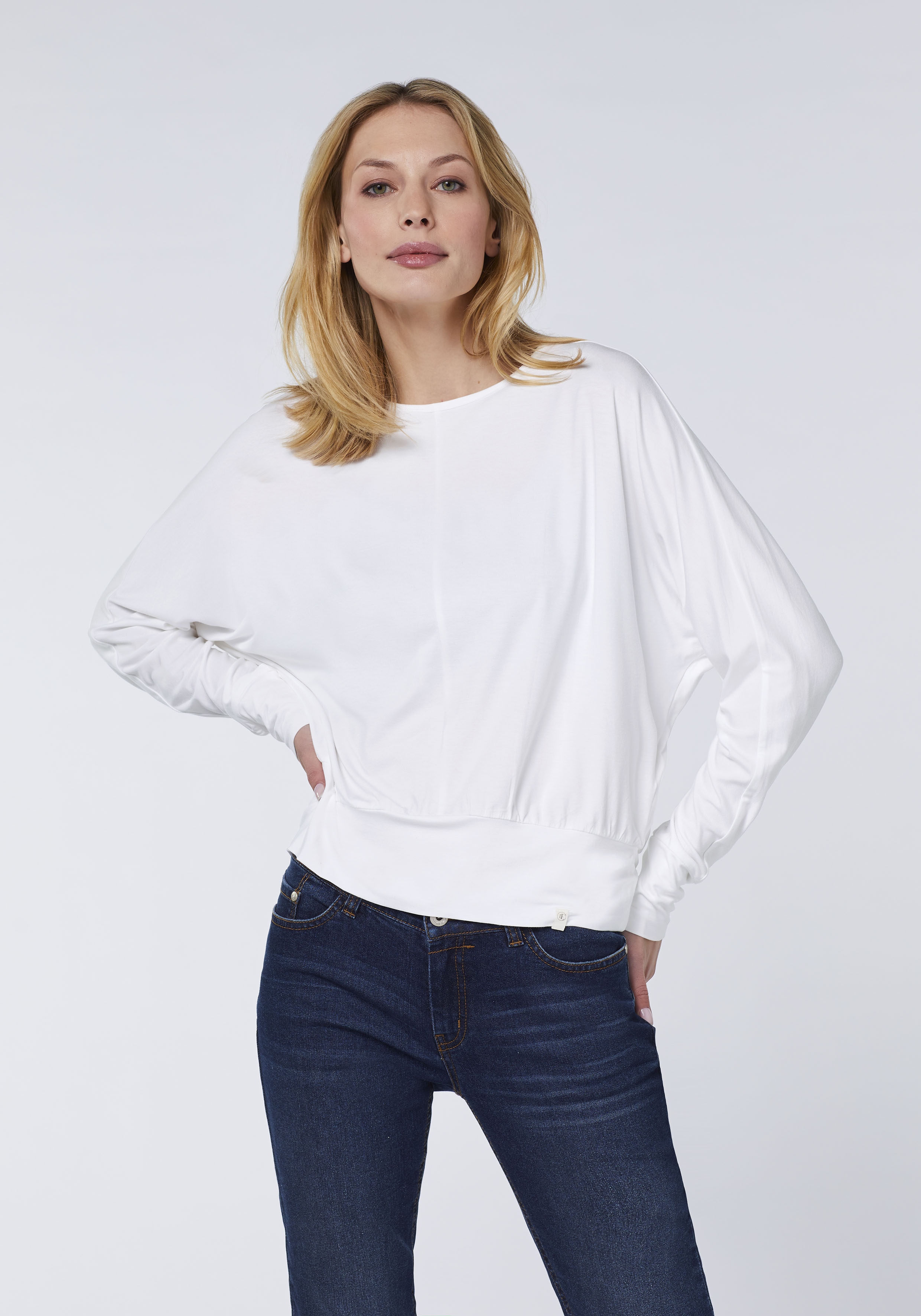 Das DETTO FATTO Damen-Longsleeve besteht aus einem soften Viskose-Elasthan-Gemisch mit V-Silhouette. Fledermausärmel, Teilungsnähte und abgesetzte Säume verleihen dem schlichten Look eine besondere Wirkung. Der Style zeichnet sich zudem durch C2C Certified® SILVER, Grüner Knopf, Made in Green by OEKO-TEX® und Standard 100 by OEKO-TEX® Zertifizierungen aus.