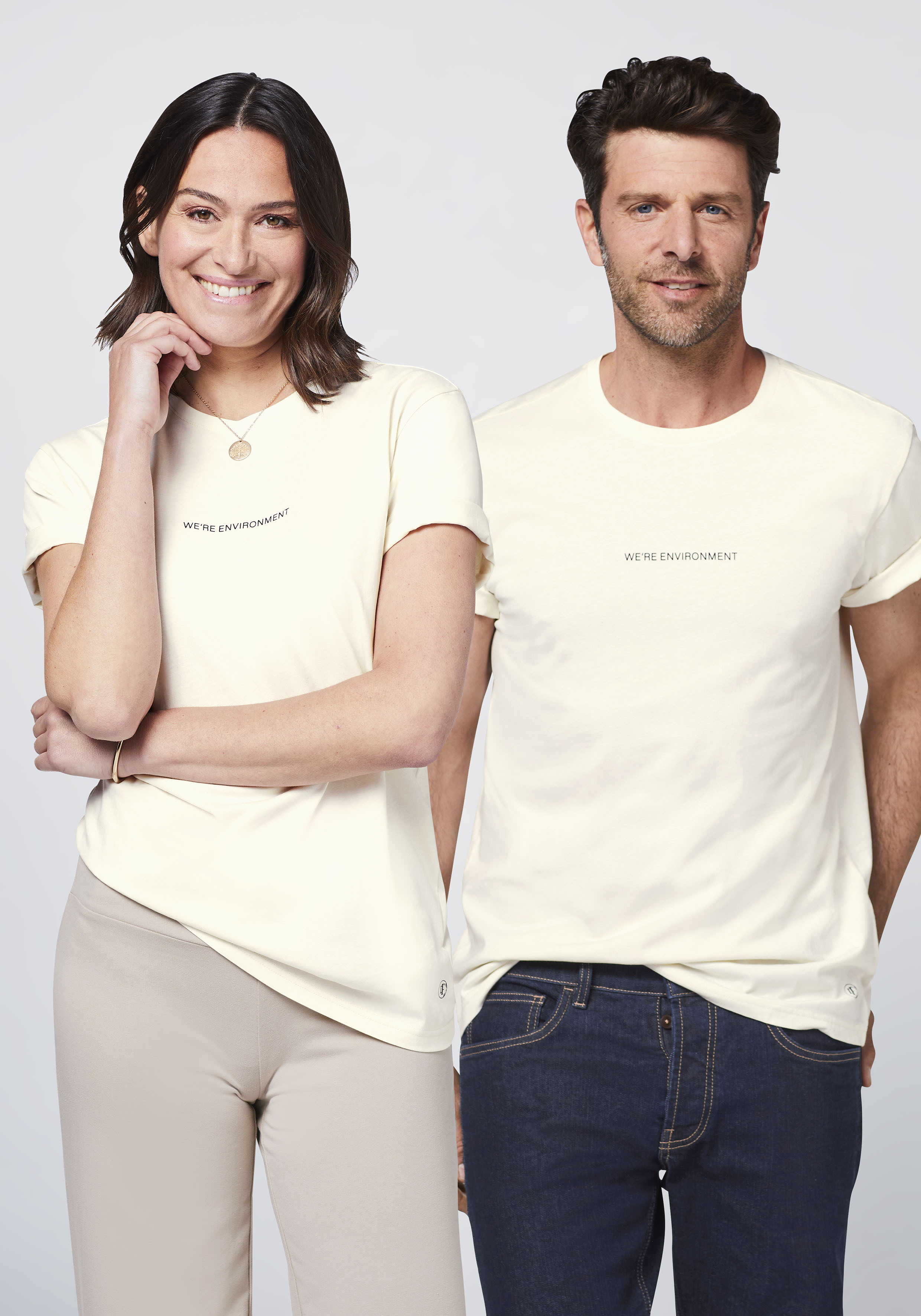 Unisex-Shirt aus Baumwolle mit „WE'RE ENVIRONMENT“-Print ist zertifiziert mit (u. a.):