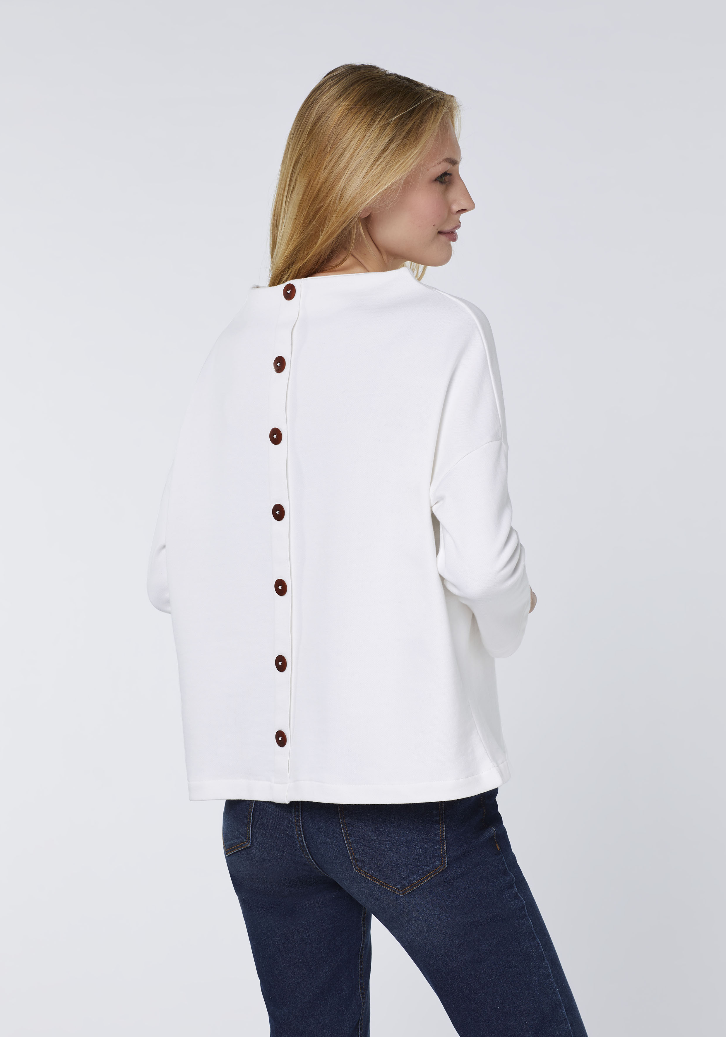 Der kastig geschnittene DETTO FATTO Sweater aus Bio-Baumwolle trumpft mit einer geknöpften Rückseite auf. Vorne zeigt er sich im gewohnt cleanen Basic-Look und setzt auf besondere Schnittdetails wie den erhöhten Kragen und angesetzte Ärmel. Das Essential ist C2C Certified® GOLD, Grüner Knopf, Made in Green by OEKO-TEX® und Standard 100 by OEKO-TEX® zertifiziert.